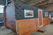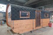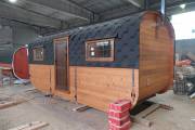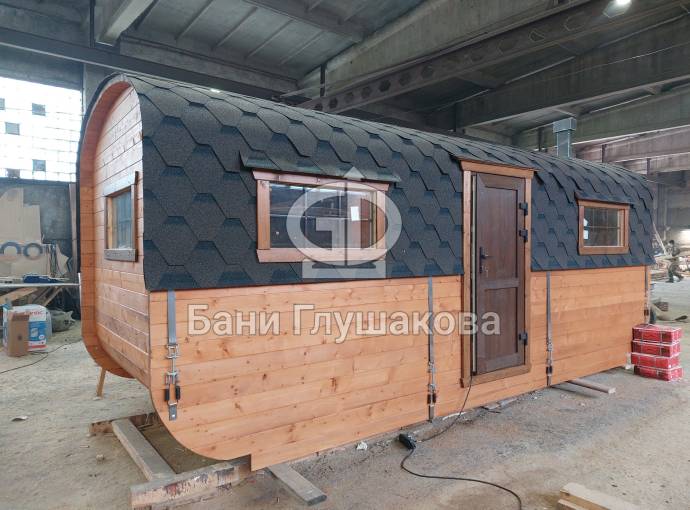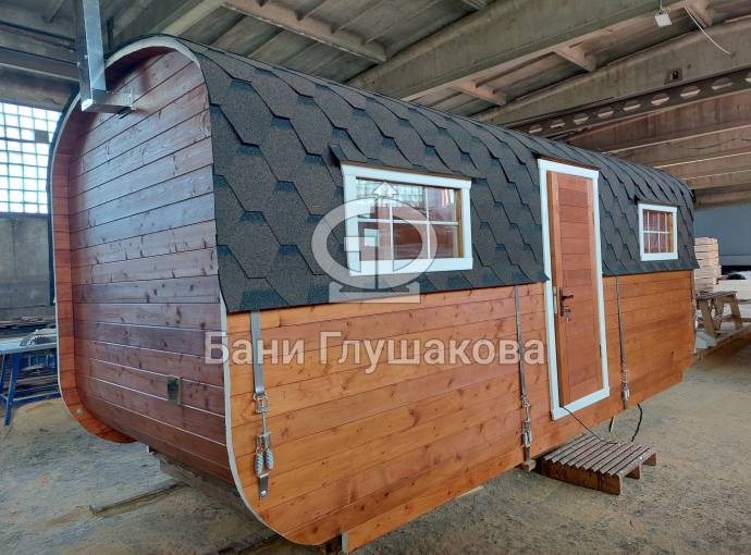 Полностью готова перевозная баня «Карета» в отличной комплектации. Изготовлена из термомодифицированной доски нашего производства, не подверженной деформации. С такой баней проблем не будет.