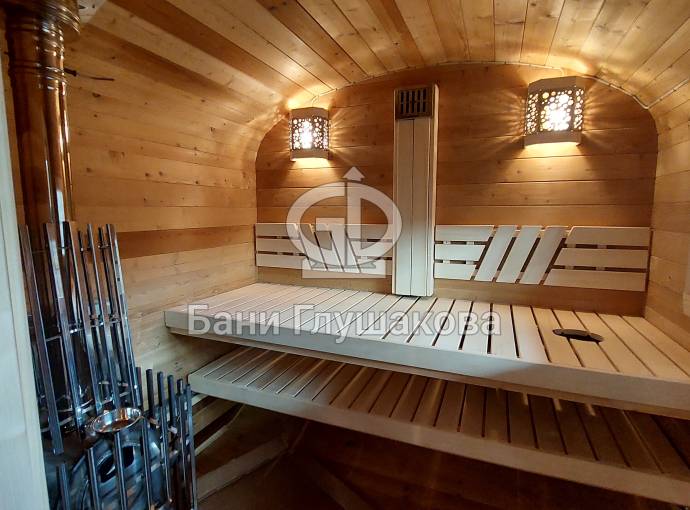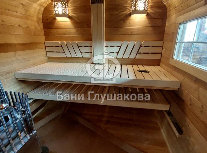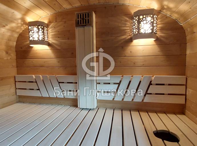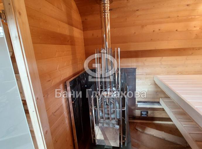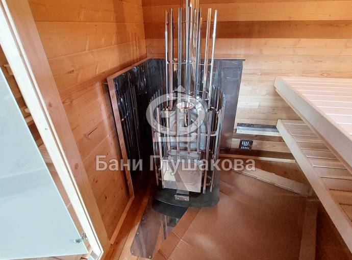 Установлена очень мощная печь с закрытой каменкой «ГИД 4», которая обеспечит отличный лёгкий пар.