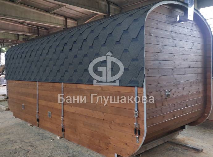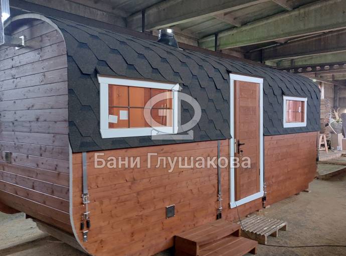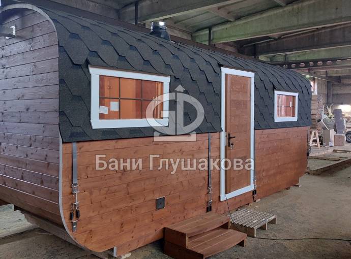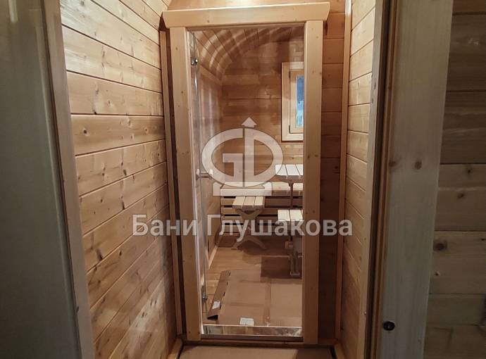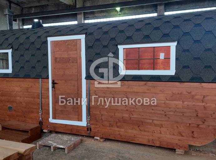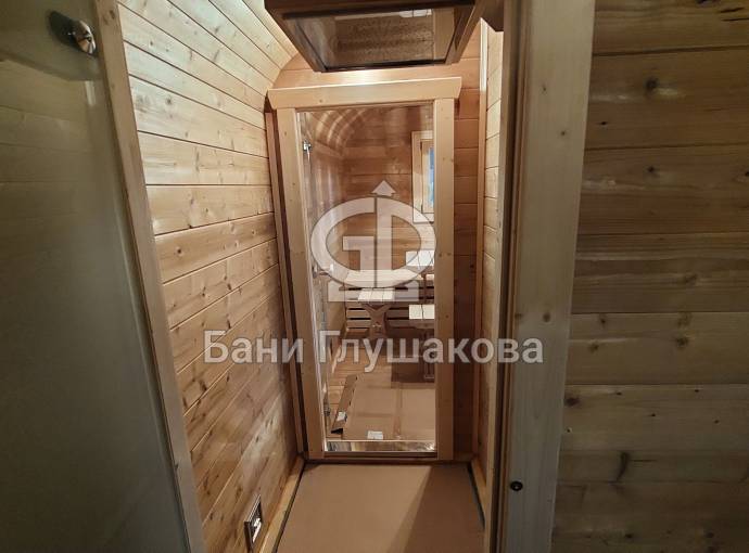 Баня «Карета» из термодоски с проходной душевой №82400261