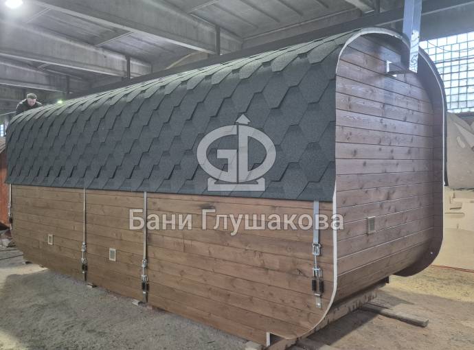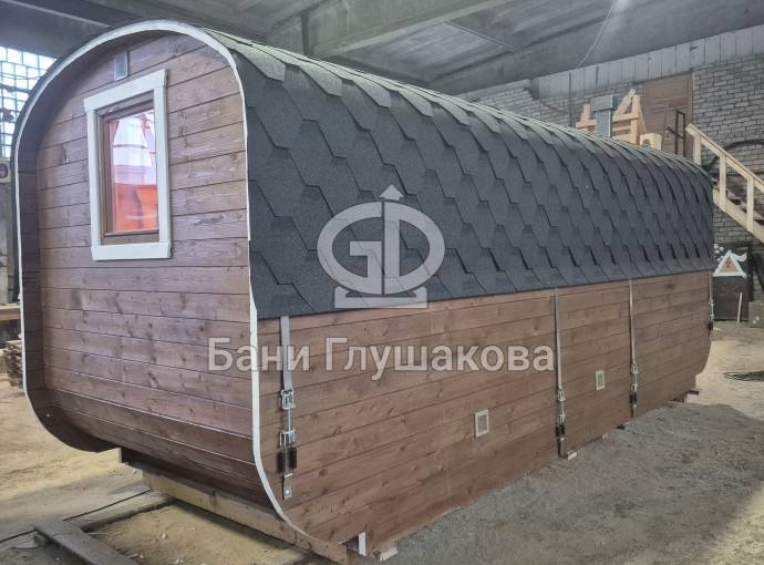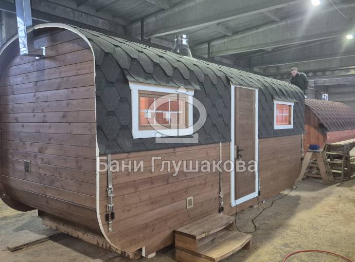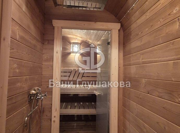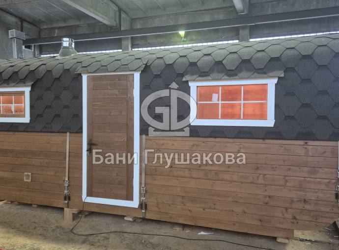 Баня «Карета» из термодоски с проходной душевой №82400271
