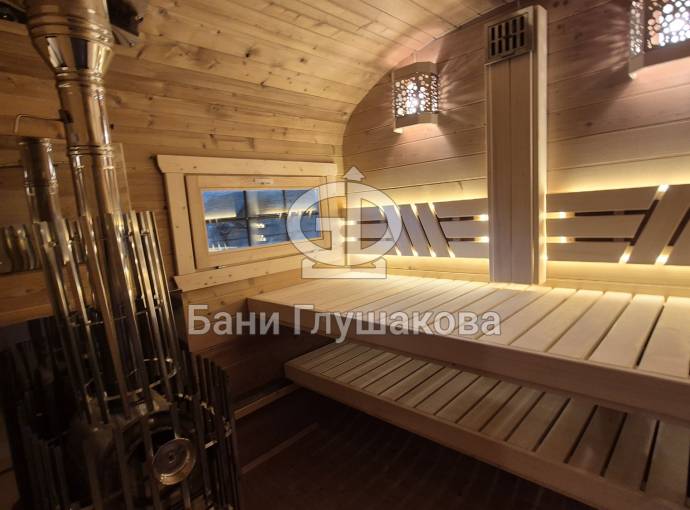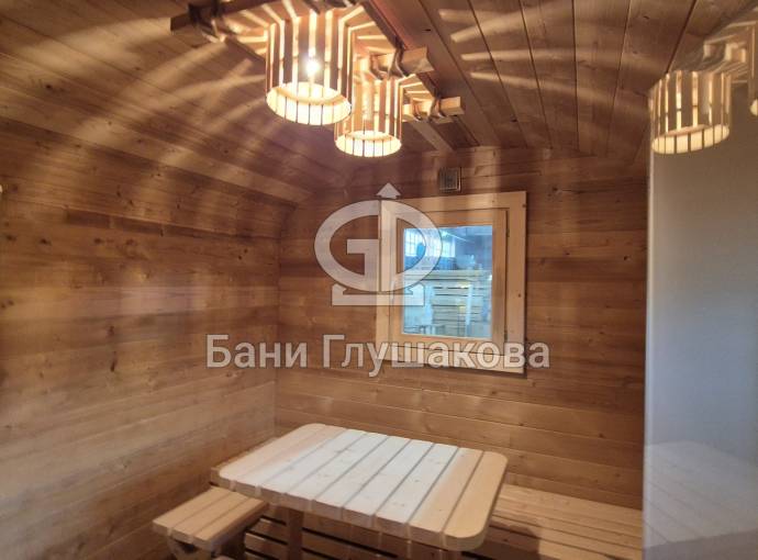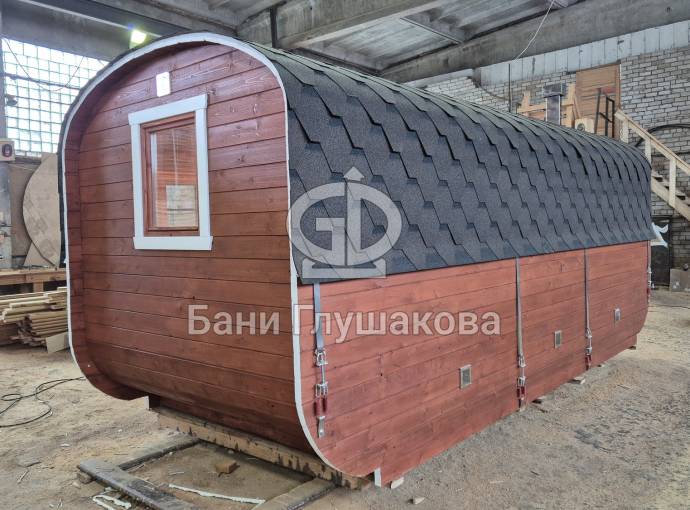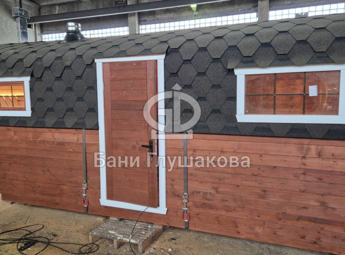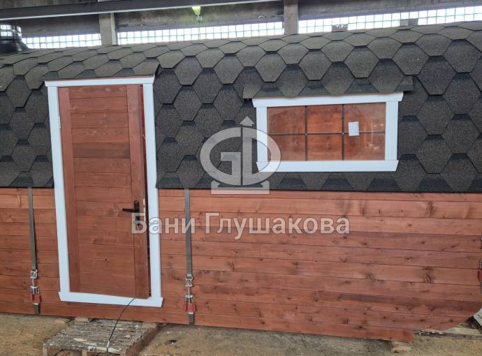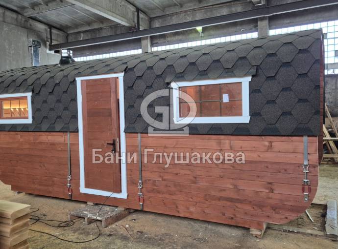 Готова новая шикарная баня «Карета» из термодоски на продажу. Размер 2, 2 на 6 метров.