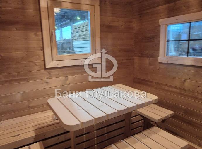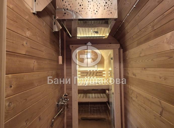 Планировка: комната отдыха, душевое помещение, парная.