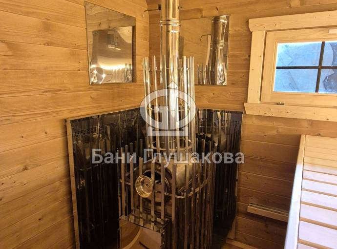 Установлена очень мощная печь с закрытой каменкой «ГИД 4», которая обеспечит отличный лёгкий пар.