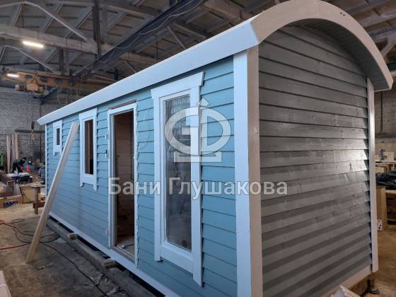 Перевозная каркасная баня «Буханочка» 2,2х6м с душем