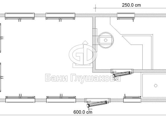 Проект каркасной бани «Танк 5» с душем 4,8х2,4