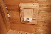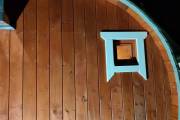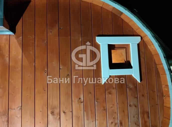 Можно установить один или более светильник у входной двери бани бочки снаружи, подробнее по ссылке, в комплект входит покраска его в цвет окантовки бани, подключение на отдельный выключатель, светодиодная лампа. Стоимость 1700 рублей за штуку