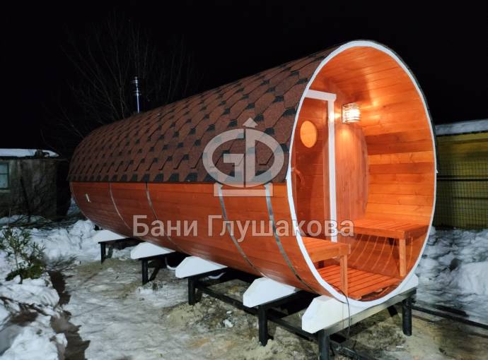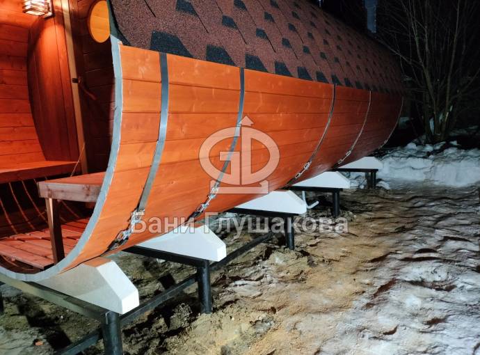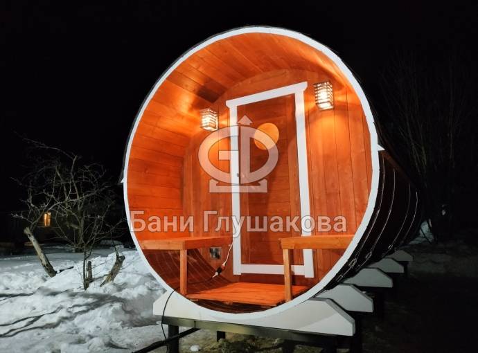 Внешний диаметр бани бочки 2.1м, внутренний размер 2.02м