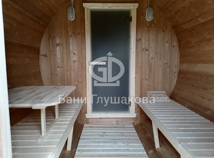 Внешний диаметр бани бочки 2.1м, внутренний размер 2.02м