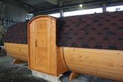 Мы неравнодушны к нестандартным проектам и постоянно находимся в поиске оригинальных решений. Новая задача ставила перед нами серьезный вопрос: как оптимизировать внутреннее пространство бани бочки таким образом, чтобы разделить моечную зону от комнаты отдыха.
