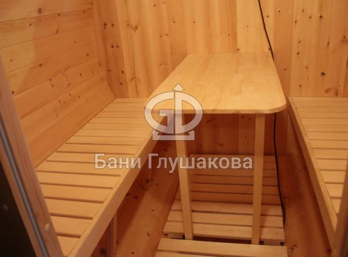 В комнате отдыха по середине скамейки или у стены, если маленький предбанник