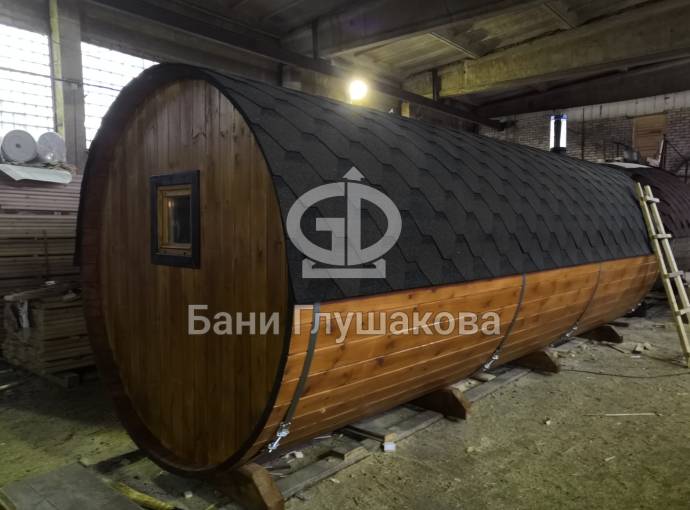 Внешний диаметр бани бочки 2.1м, внутренний размер 2.02м