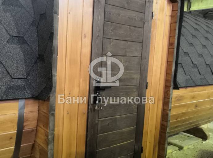 Делается бесплатно во всех баня без террасы, так как мы отвечаем за все элементы бани и не хотим чтобы входная дверь пришла в негодность из за отсутствия навеса.