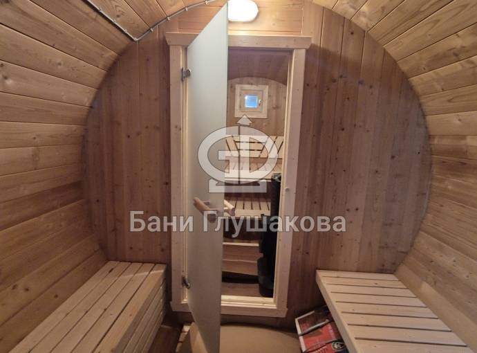 Внешний диаметр бани бочки 2.1м, внутренний размер 2.02м