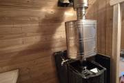 Печь из нержавеющей стали с встроенным баком и каменкой на трубе, ссылка на страницу с фото и видео
