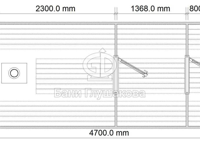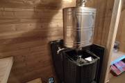 Можно установить насосную станцию, бойлер, бак, душ, устанавливается как в душевой комнате так и в маленькой бане, но уже слева или с права в комнате отдыха, а душ выводится в этом случае в парную.