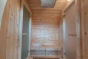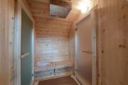 Внутри 3 отделения: помывочное помещение по центру, а по бокам парная и комната отдыха.