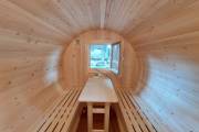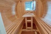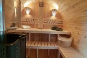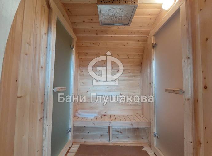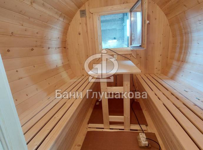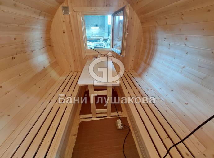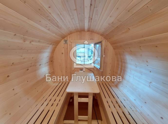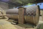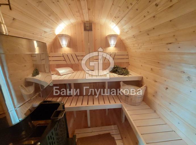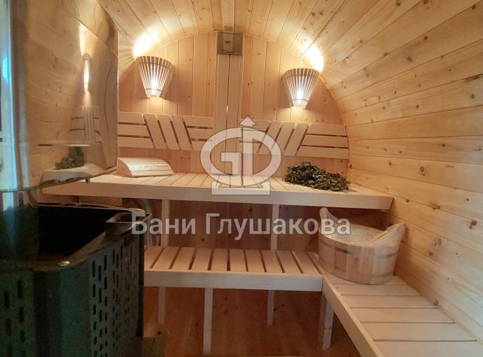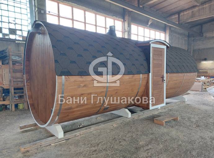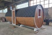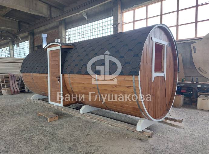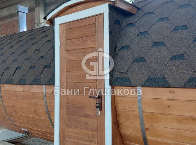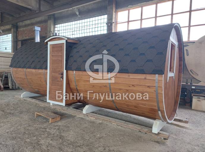 Баня бочка круглой формы диаметром 2,3 метра и длиной 5,9 метров — это максимальный размер для бочки перевозного типа.