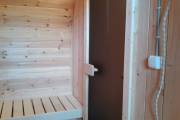 Можно установить насосную станцию, бойлер, бак, душ, устанавливается как в душевой комнате так и в маленькой бане, но уже слева или с права в комнате отдыха, а душ выводится в этом случае в парную.