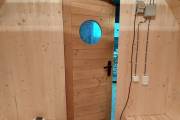 Можно установить один или более светильник у входной двери бани бочки снаружи, подробнее по ссылке, в комплект входит покраска его в цвет окантовки бани, подключение на отдельный выключатель, светодиодная лампа. Стоимость 1700 рублей за штуку