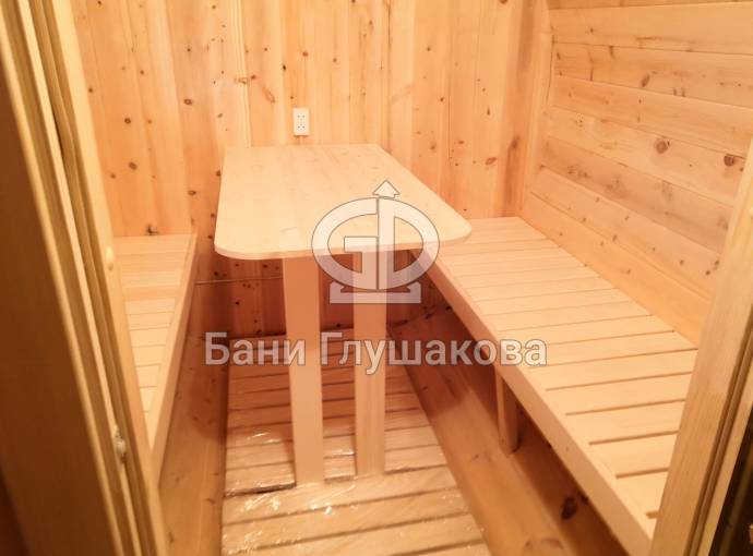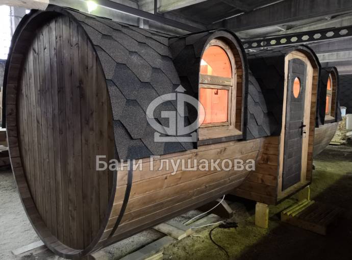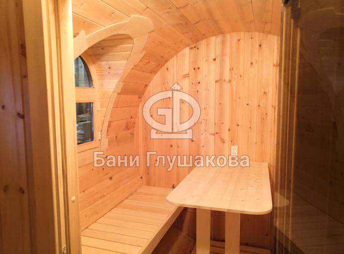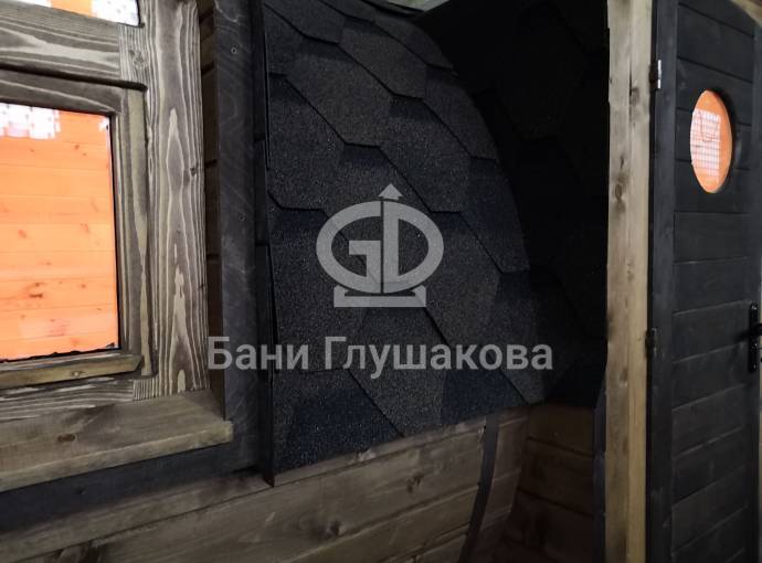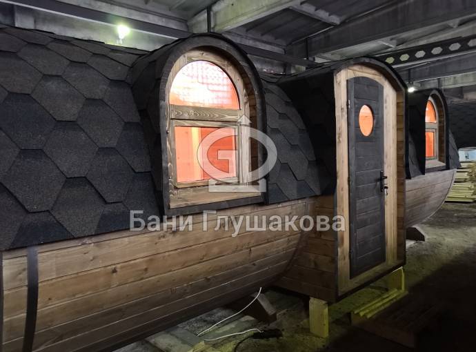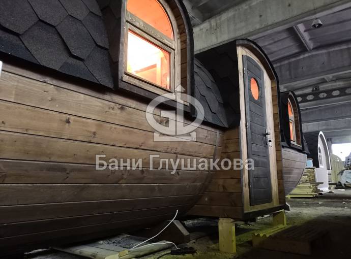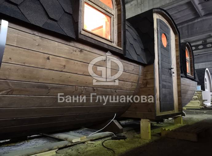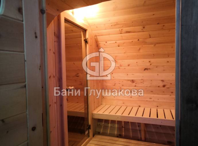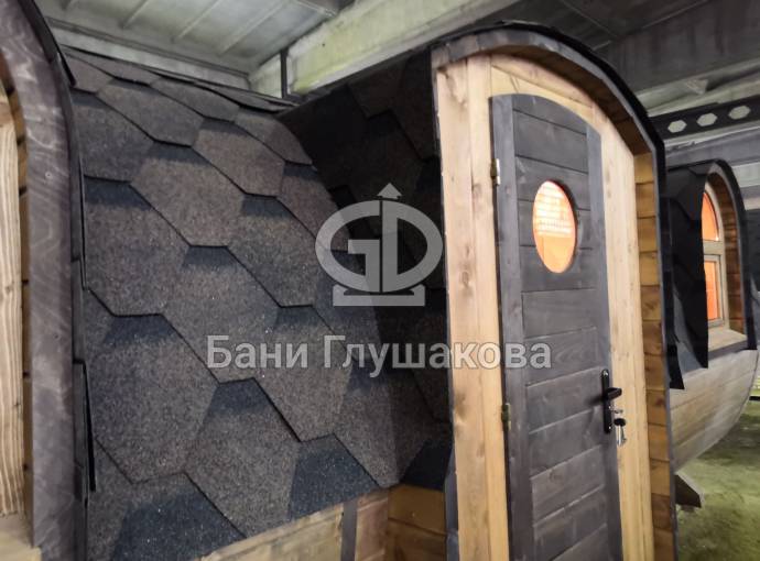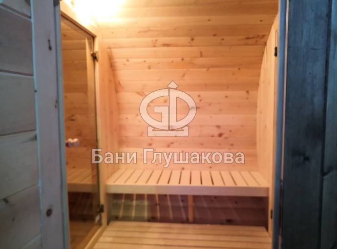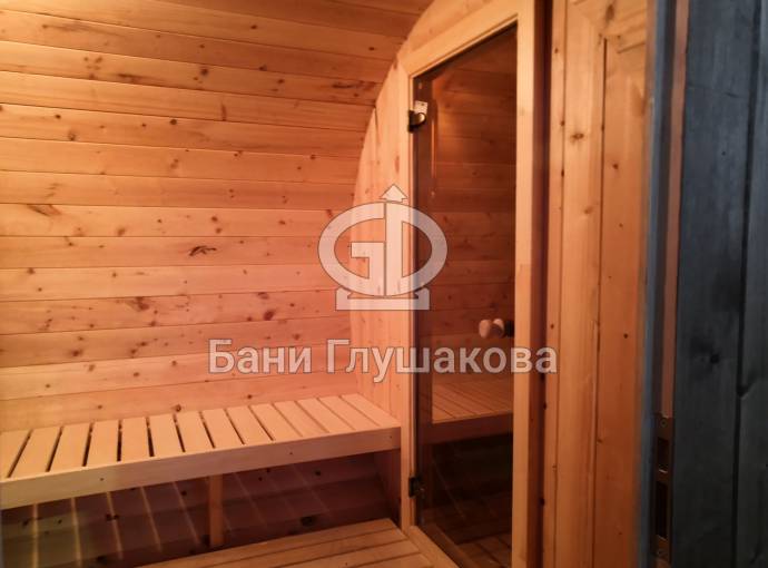 Эта баня была сделана и продана, она выставлена как пример возможного варианта исполнения.