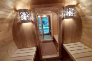 Можно установить один или более светильник у входной двери бани бочки снаружи, подробнее по ссылке, в комплект входит покраска его в цвет окантовки бани, подключение на отдельный выключатель, светодиодная лампа. Стоимость 1700 рублей за штуку