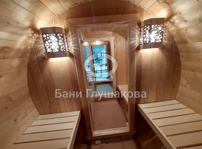 Внешний диаметр бани бочки 2.1м, внутренний размер 2.02м