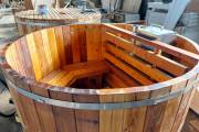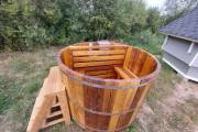 Купель в наличии. Наконец-то мы изготовили деревянную купель, которая устраивает меня по всем показателям. Термодревесины отлично показала себя на начальных испытаниях: никаких деформаций, никаких нареканий.