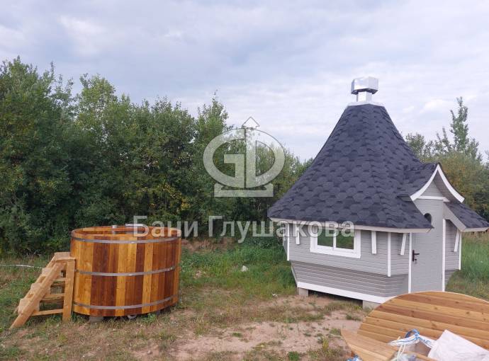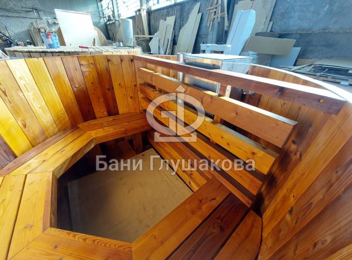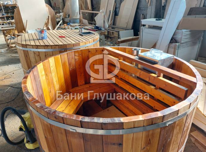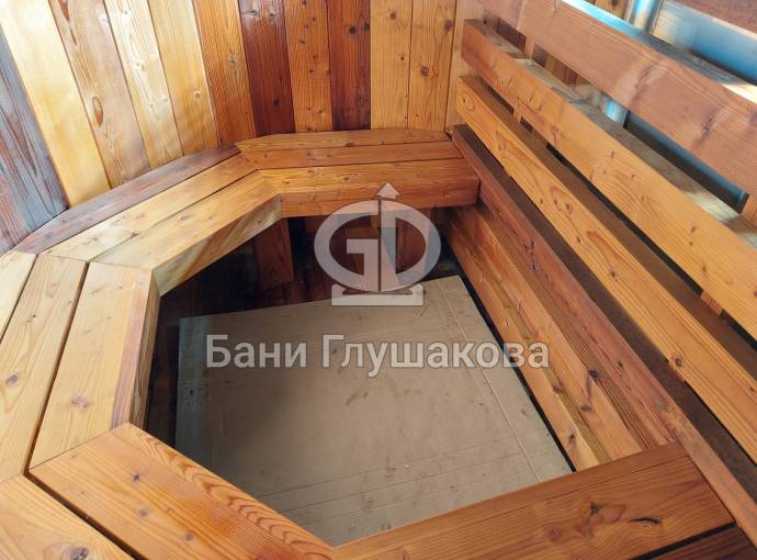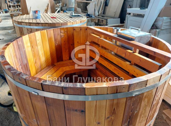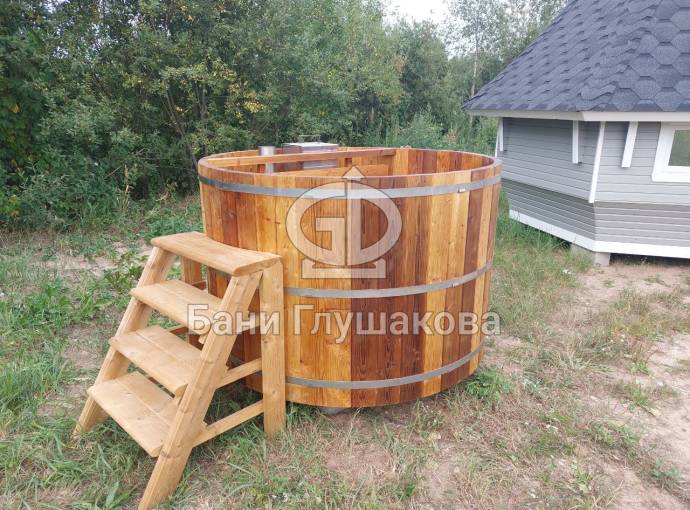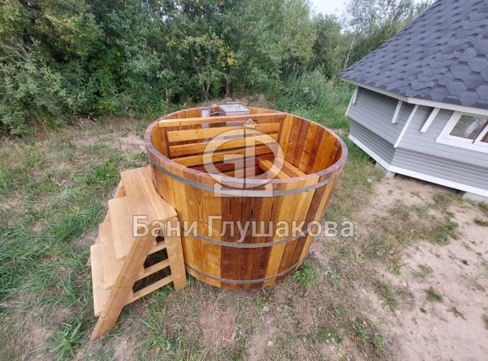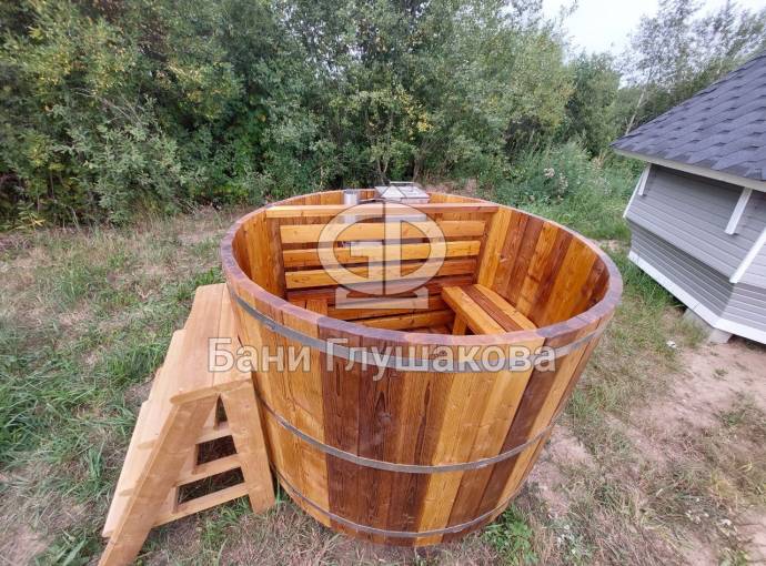 Купель рассчитана на 4-5 человек. Нагрев с погружной печью за 3 часа.
