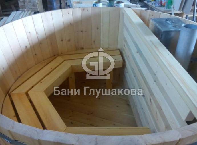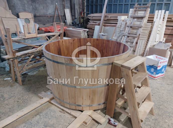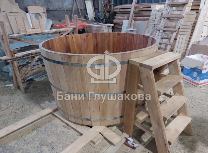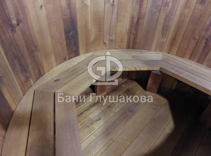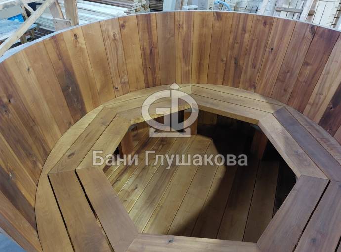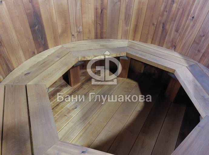 Изготовлена на продажу отличная вместительная купель конической формы из термомодифицированной берёзы. В купели оптимально помещаются 4 человека, однако она подойдет и для 4-5 персон.