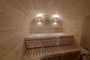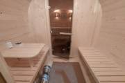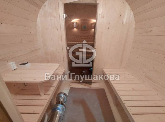 Это стандартный вариант на 2 помещения: предбанник и парная. В стоимость уже входит сборка, модифицированная печь Бочонок Компакт с парогенератором, электрика, светильники, покраска (Акватекс).