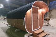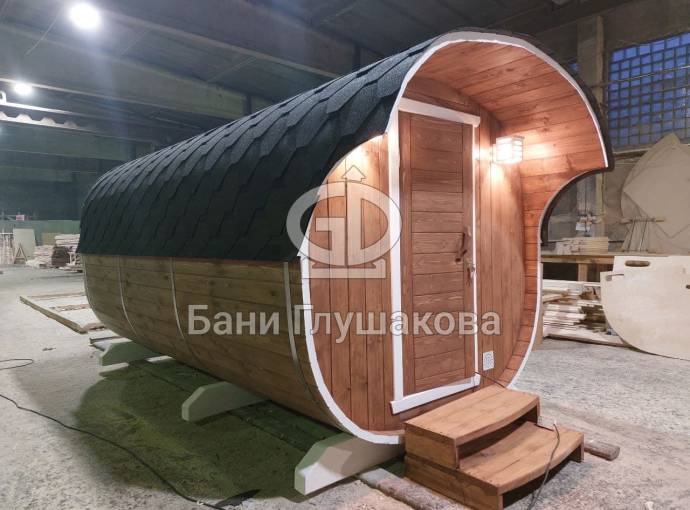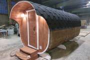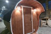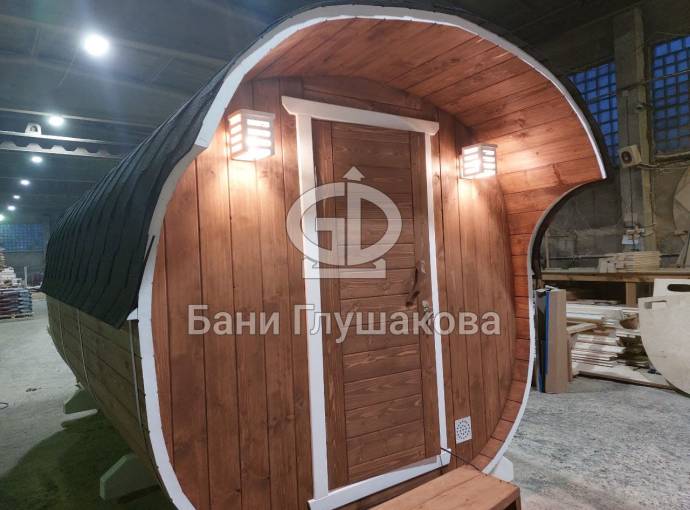 23 января 2022 года изготовили новую баню-бочку квадро из ёлки в самой популярной расцветке «Орех» с белой обводкой.