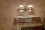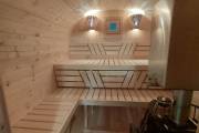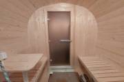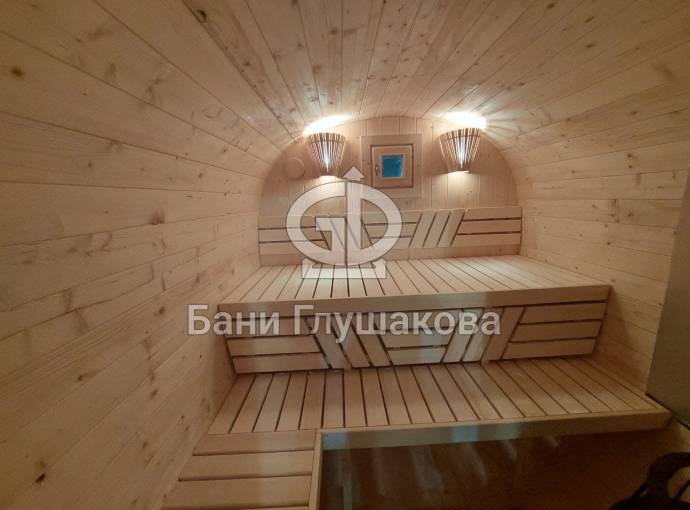 Это стандартный вариант на 2 помещения: предбанник и парная. В стоимость уже входит сборка, модифицированная печь Бочонок Компакт с парогенератором, электрика, светильники, покраска (Акватекс).