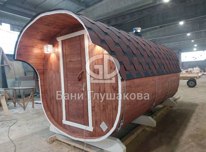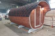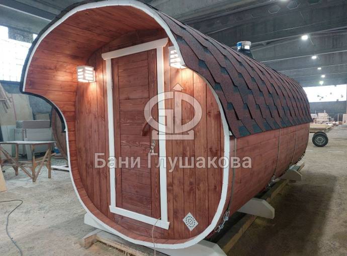 Готова к продаже новая квадратная баня бочка 4 метра из ёлки в цвете «Махагон».