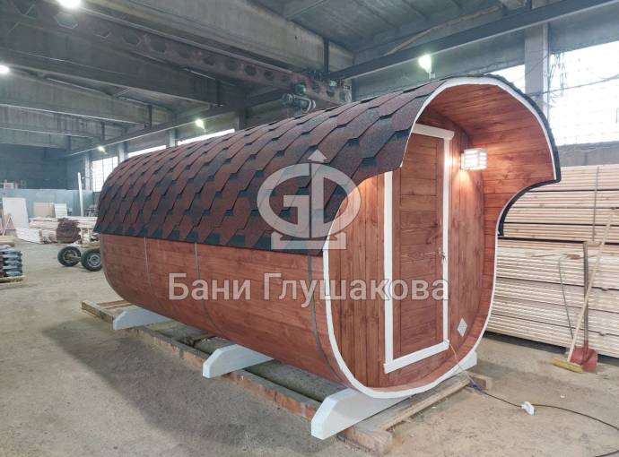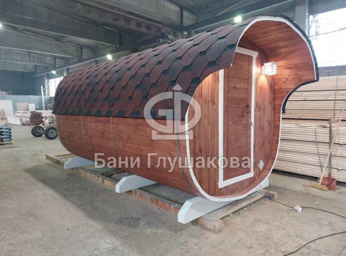 Квадратная баня бочка 4 м из ели (Махагон) №82200104