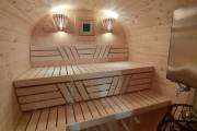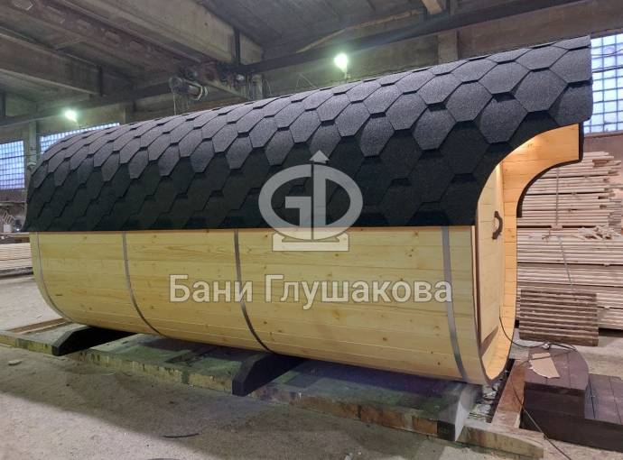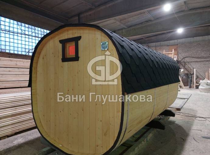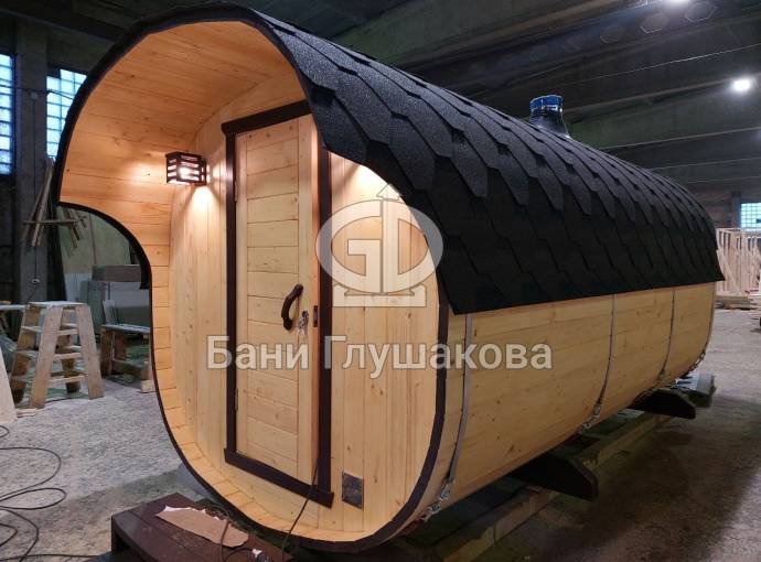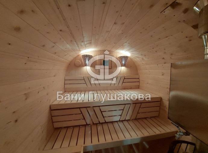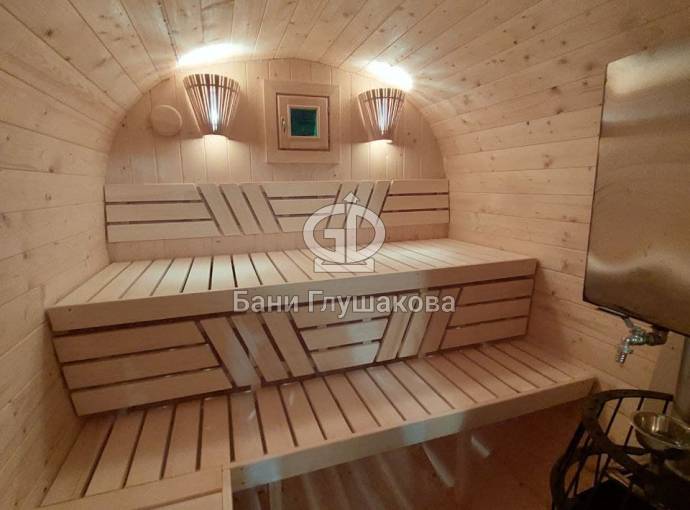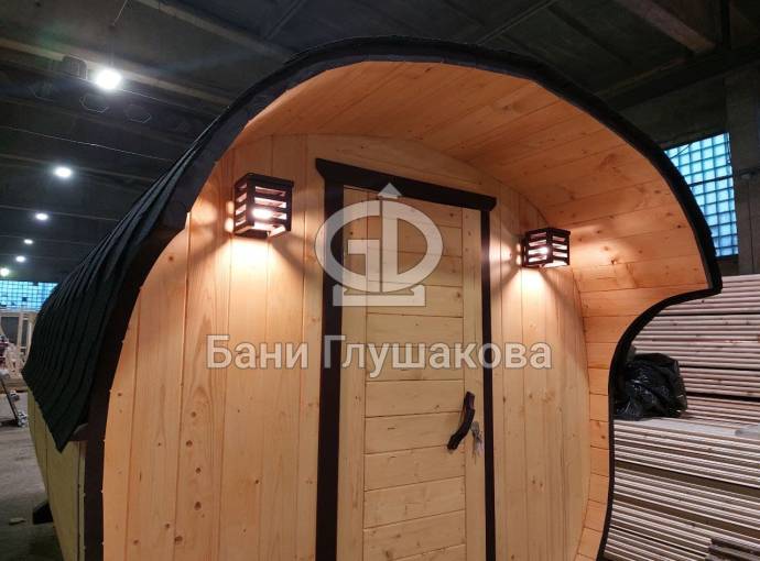Это стандартный вариант на 2 помещения: предбанник и парная. В стоимость уже входит сборка, модифицированная печь Бочонок Компакт с парогенератором, электрика, светильники, покраска (Акватекс).