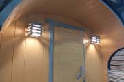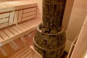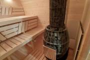 Это стандартный вариант на 2 помещения: предбанник и парная. В стоимость уже входят сборка, лектрика, светильники, покраска (Акватекс Сканди — супер краска!) и печь. О ней стоит рассказать отдельно. Эта печь нашего производства. Мы пользовались печами многих марок и досконально изучили их сильные и слабые места. Наша печь вобрала в себя всё самое лучшее, при этом она значительно дешевле — мы не делаем наценку для заказчиков бань.
