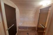 Можно установить один или более светильник у входной двери бани бочки снаружи, подробнее по ссылке, в комплект входит покраска его в цвет окантовки бани, подключение на отдельный выключатель, светодиодная лампа. Стоимость 1700 рублей за штуку