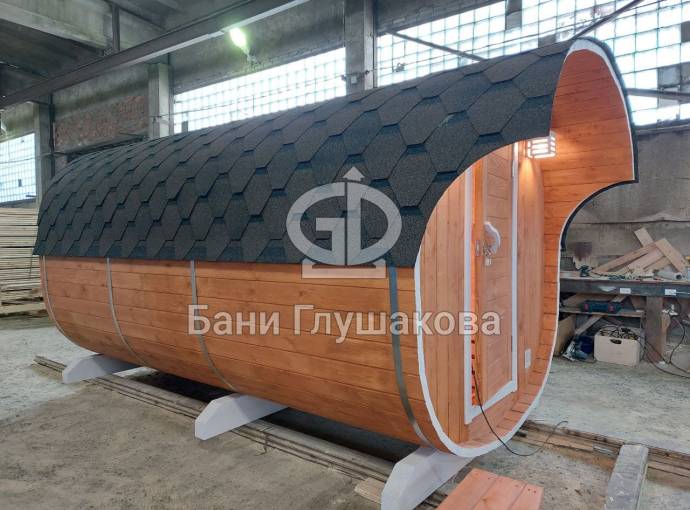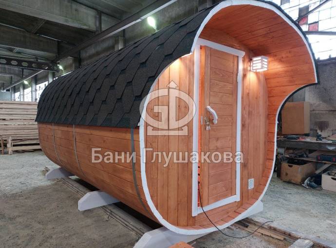 Квадратная баня бочка 4 м из ели «Груша» №82200110