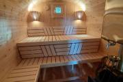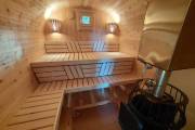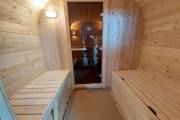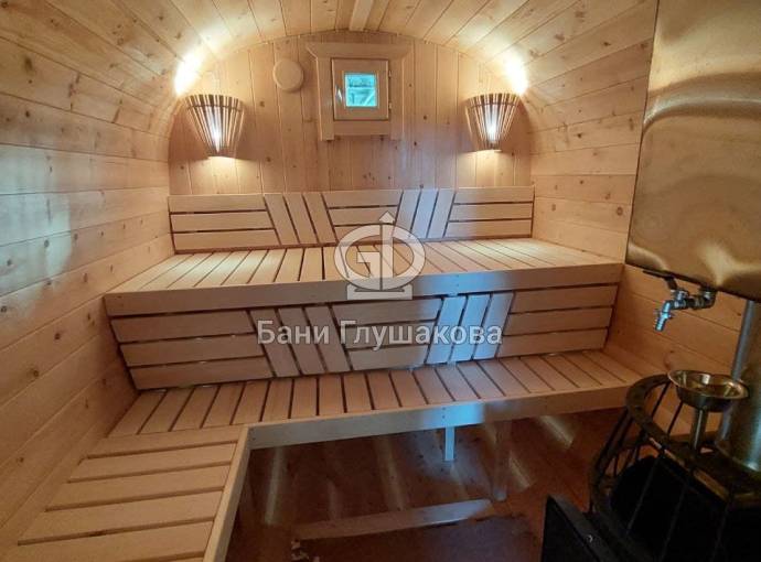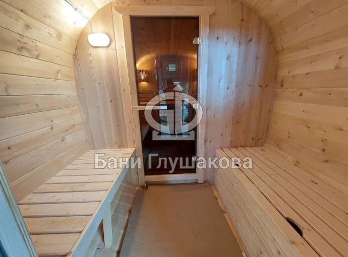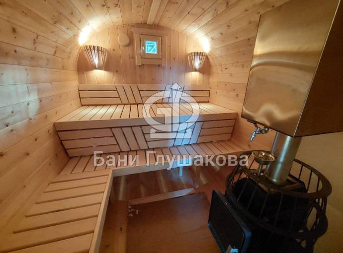 Это стандартный вариант на 2 помещения: предбанник и парная. В стоимость уже входит сборка, модифицированная печь Бочонок Компакт с парогенератором, электрика, светильники, покраска (Акватекс).