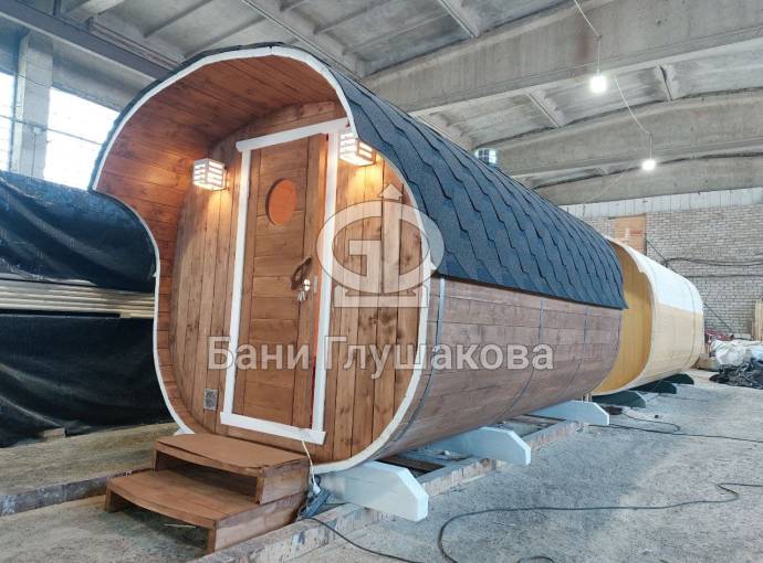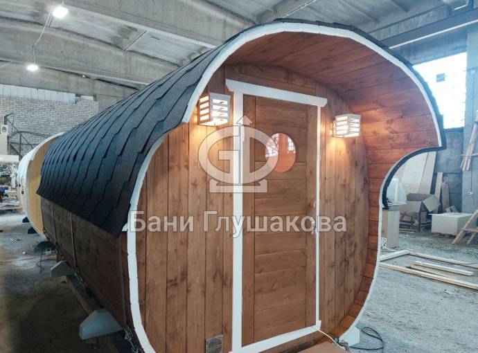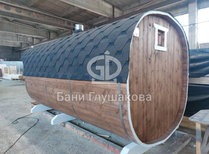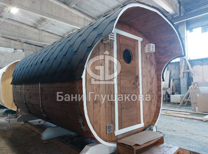 Квадратная баня бочка 4 м из ели «Орех» №82200117