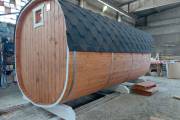 Сейчас банька строится в цеху Великого Новгорода. Мы её упакуем и оставим ждать, пока её не купит новый владелец. Им можете стать вы!