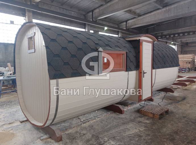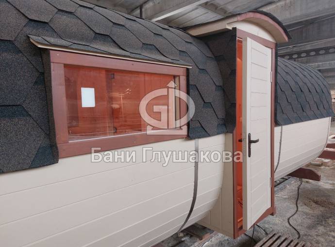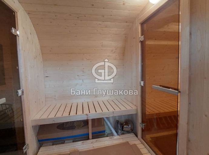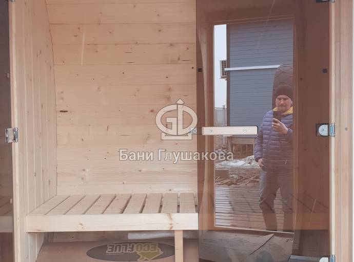 Квадратная баня бочка со входом посередине №82200130