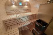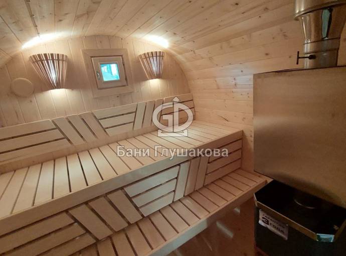 Это стандартный вариант на 2 помещения: предбанник и парная. В стоимость уже входит сборка, модифицированная печь Теплодар, электрика, светильники, покраска (Акватекс).