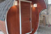 Это повтор бани №82200136 (уже забронирована). Стильная квадробочка из ёлки в кленовой красной расцветке — для тех, кто хочет добавить красок жизни.