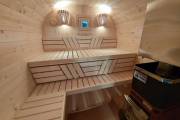 Это стандартный вариант на 2 помещения: предбанник и парная. В стоимость уже входит сборка, модифицированная печь проверенной марки «Теплодар», электрика, светильники, покраска (Tikkurila).