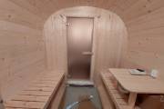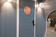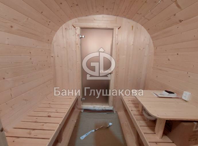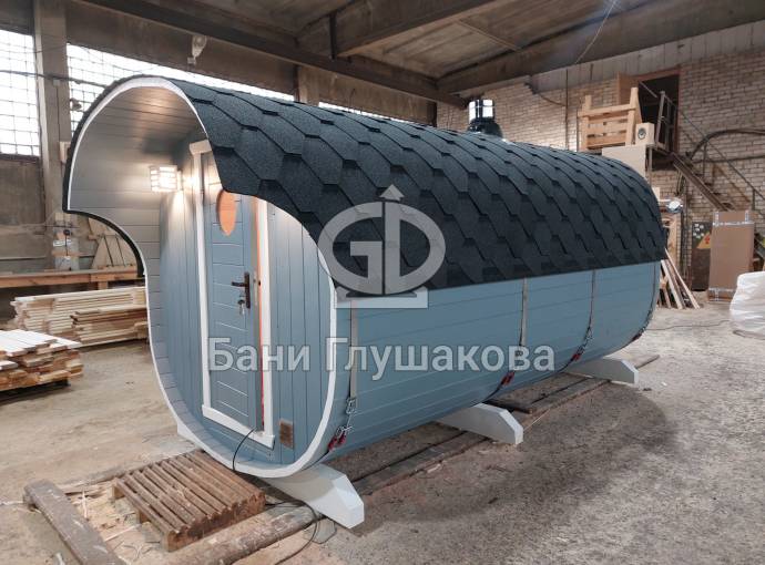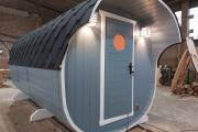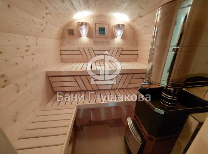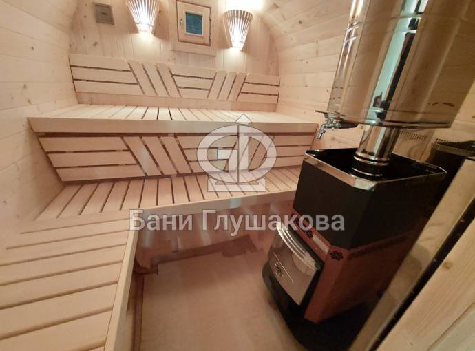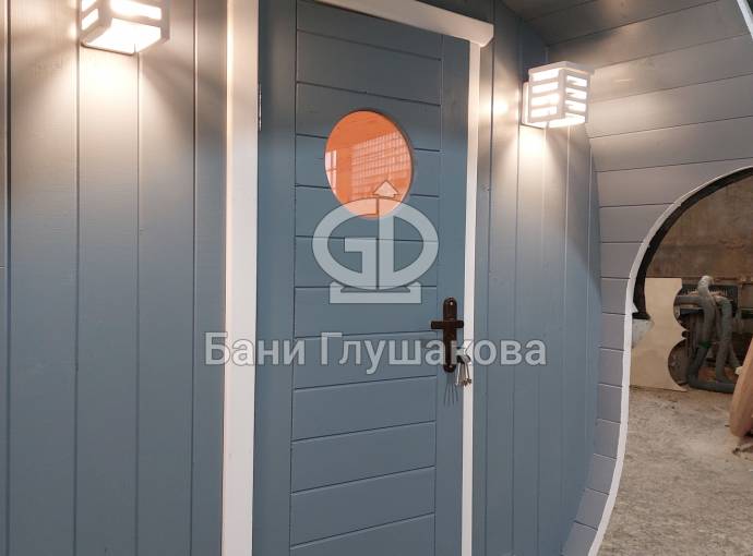 Это стандартный вариант на 2 помещения: предбанник и парная. В стоимость уже входит сборка, печь Теплодар Русь 12 ЛУ, электрика, светильники, ступеньки. Вокруг печи стоит металлический экран! Это наша последняя новинка. Краска: Акватекс «Северное море»