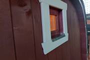 Баня сделана из отсортированной термодоски с небольшими косметическими изъянами. Обязательно посмотрите видео – в нём мы показываем все недочёты по доске. Всё это учтено в цене.