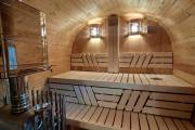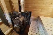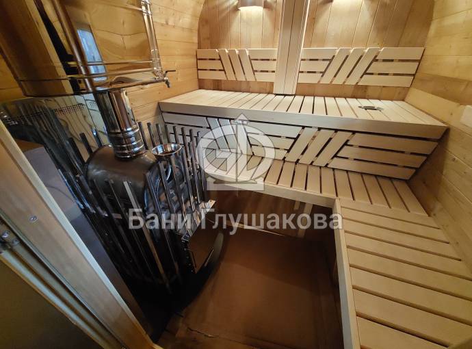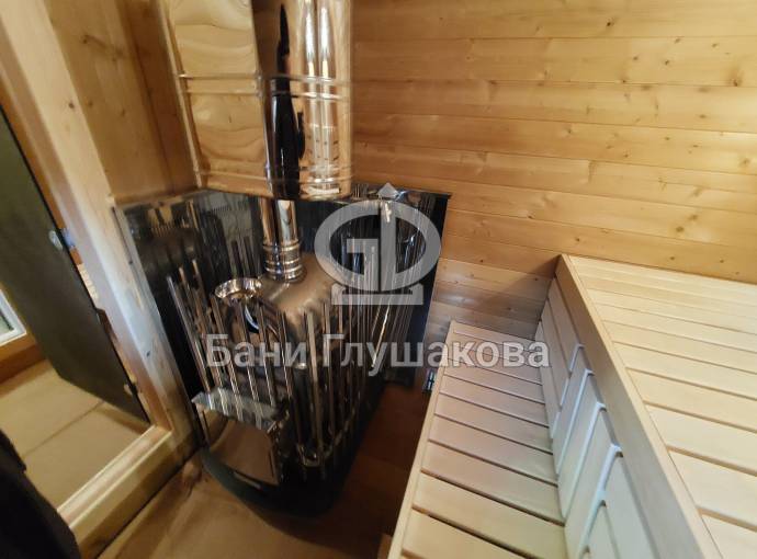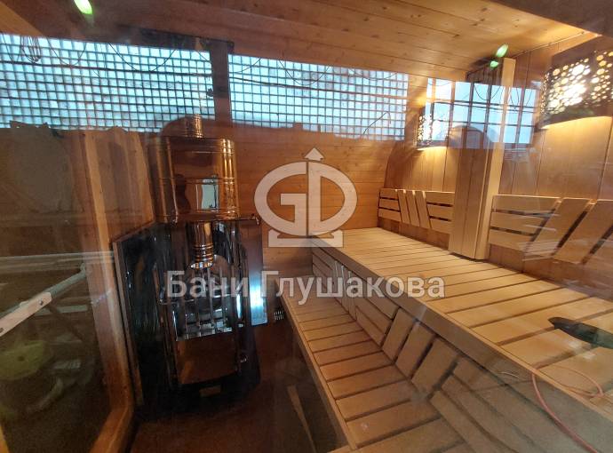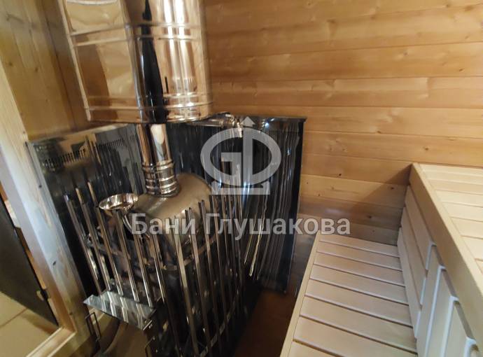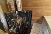 В стоимость уже входит сборка, печь нашего производства с двумя каменками и парогенератором, электрика, металлические уличные светильники, ступеньки. Вокруг печи стоит металлический экран. Установлены металлические комплектующие из нержавейки: вентиляционные клапаны-задвижки, крепления для проводки, наличник на форточку и порожек между помещениями. Ступеньки тоже уже входят в стоимость.