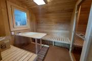 В бане 3 помещения: комната отдыха (в неё как раз сделан вход с улицы), помывочная и парная. Так как баня сама по себе большая (2,3 метра ширина, 5,9 метров длина), то помещения получились прям приличными.