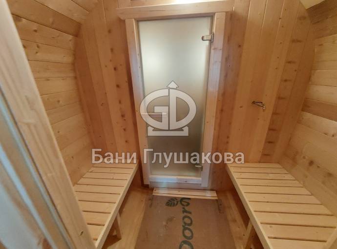 Симпатичная стандартная квадробочка №82400242 изготовлена 4 апреля 2024 года. Баня сделана из отсортированной термодоски с небольшими косметическими изъянами.